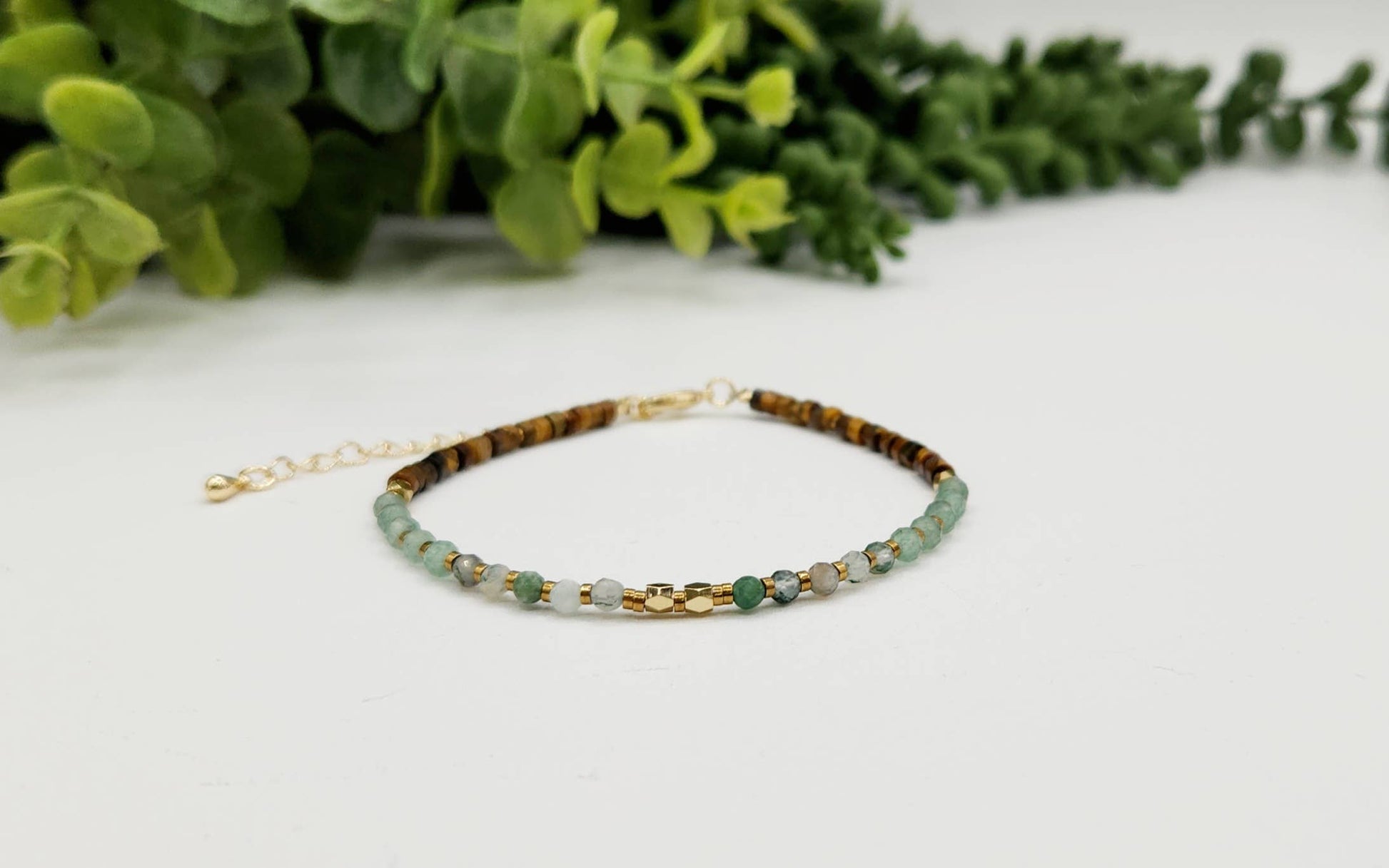 ABUNDANCE-Moss Agate/Green Aventurine/Tiger Eye Bracelet-3mm