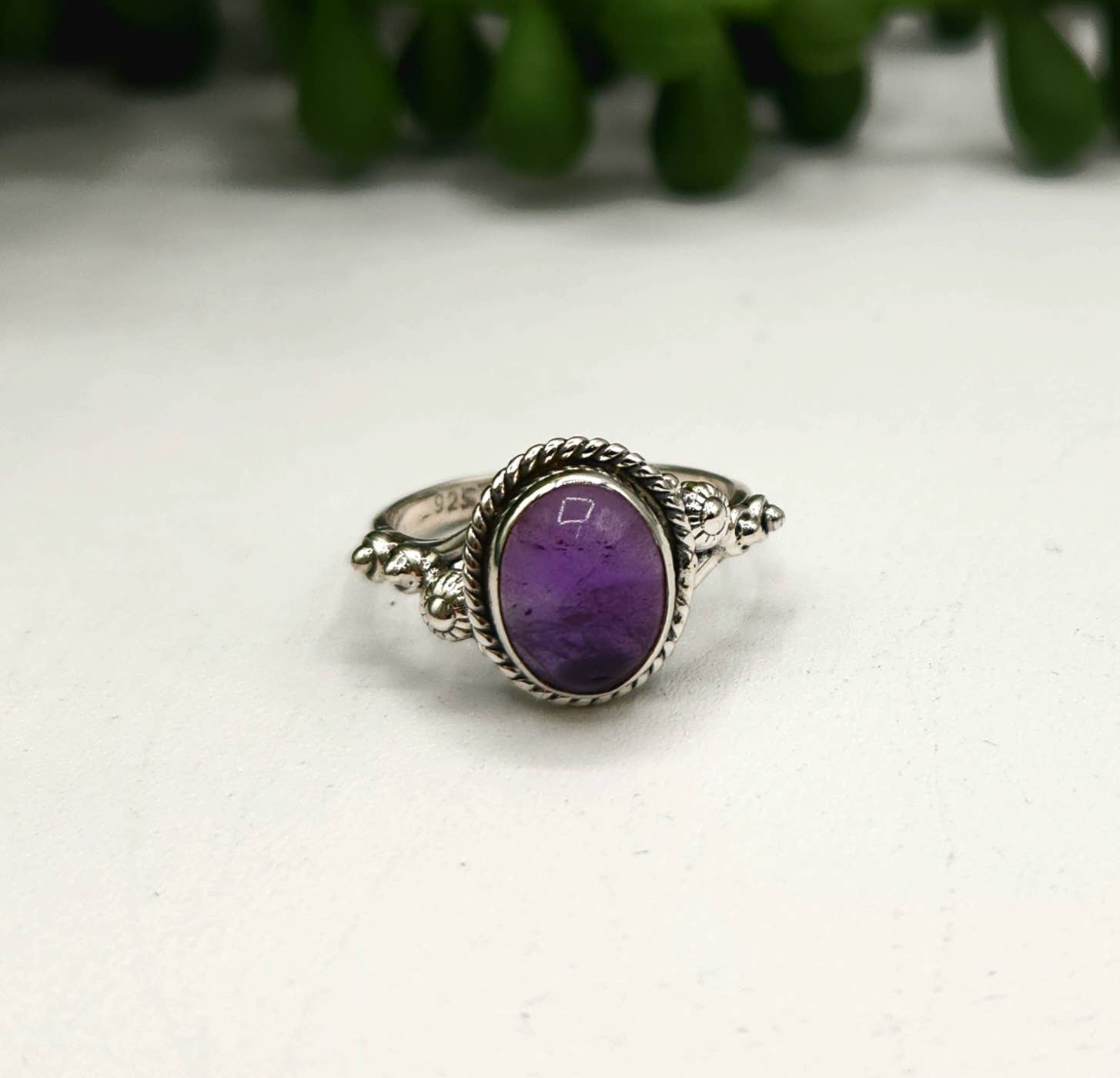 Amethyst Semi-Precious Gemstone Sterling Silver (925) Ring :Size 7