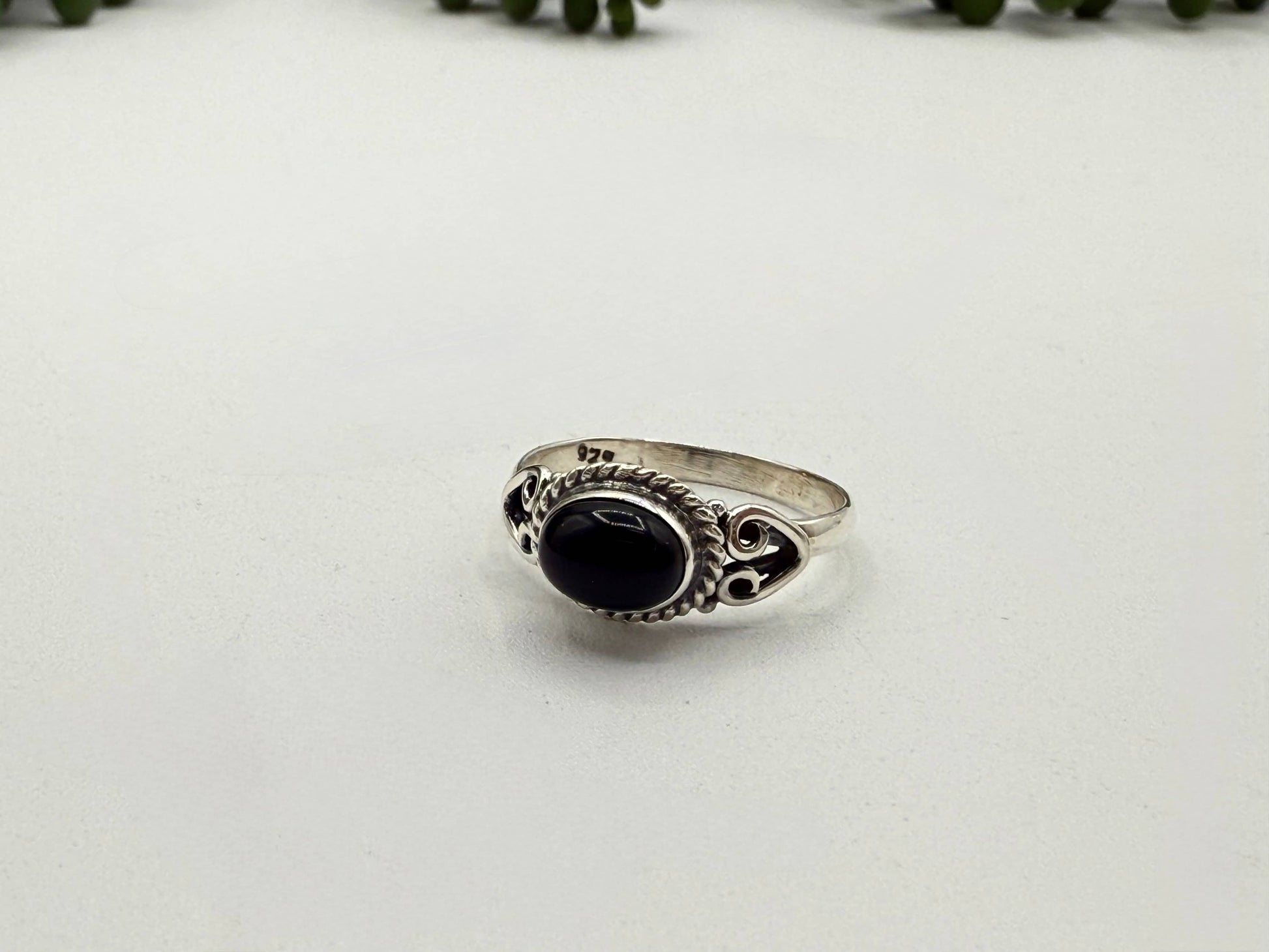 Black Onyx Semi-Precious Side Oval Sterling Silver/925 Ring Size 6
