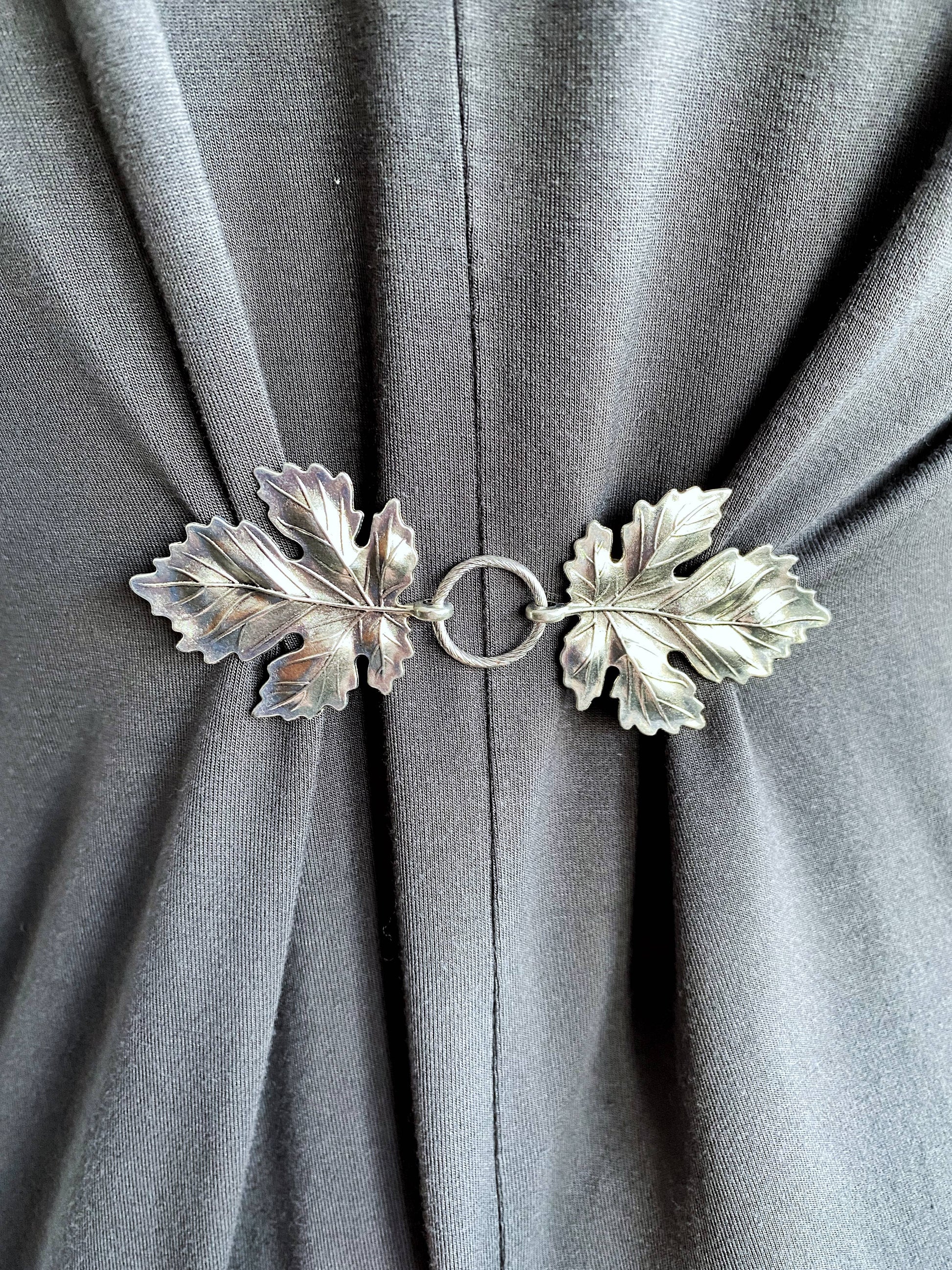Dress Cinch Clips for Clothes, Silver Metal Leaves Boho