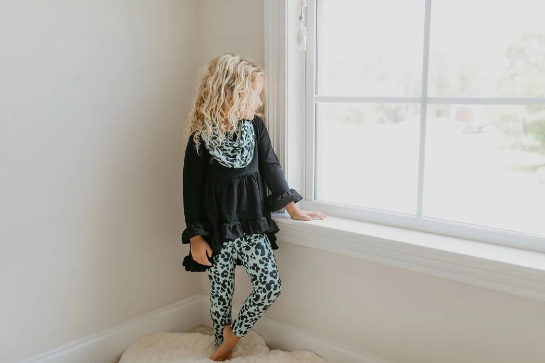 Girls Black/Teal 2 Piece Set w/Scarf Size 5/6