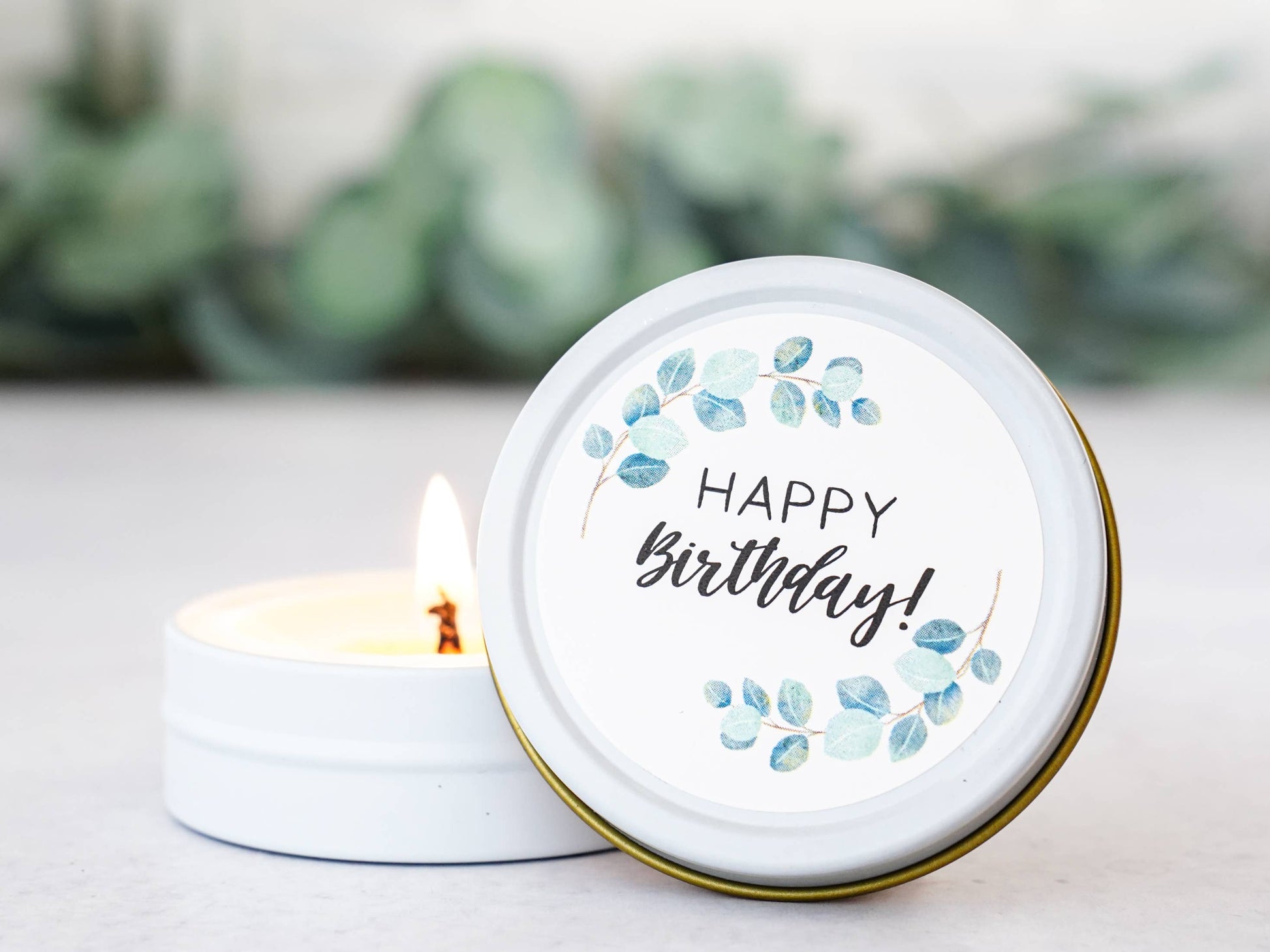 'Happy Birthday' small candle or lip balm favor or gift bag with both | Candle Lip Balm Chapstick affordable bulk party luncheon ideas games prizes tea party. Need an adorable mini gift or favor for your baby shower or pregnancy announcement? Here's the perfect party favor for luncheon, brunch, family gathering or as little gifts for all your friends.