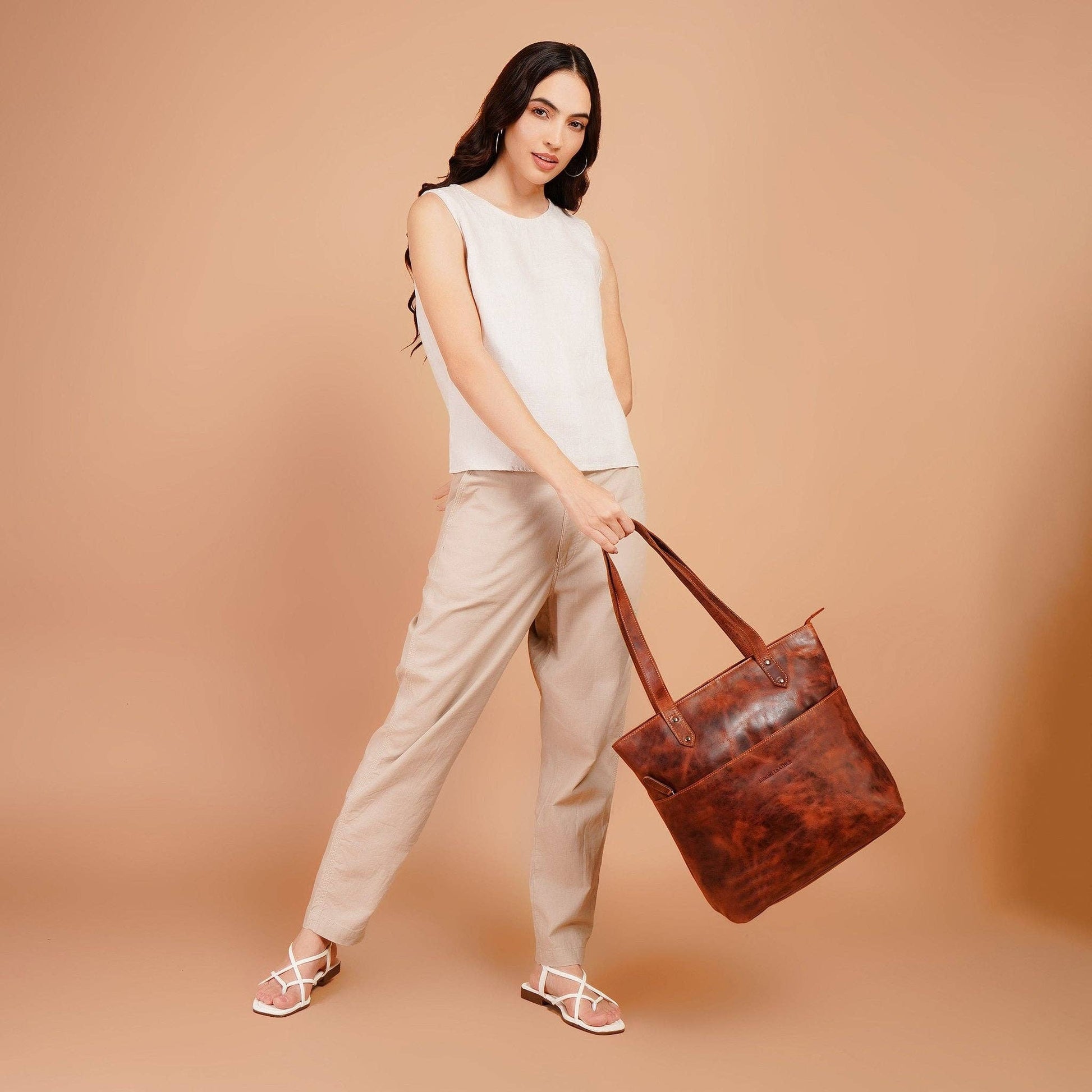 Meet the Rowan Tote by Minori Leather — a versatile everyday companion crafted for modern elegance. Handcrafted from full-grain oil pull-up cowhide leather, it beautifully captures the spirit of simplicity and function. With its deep chestnut tones and naturally aged texture, Rowan combines understated charm with purposeful design.