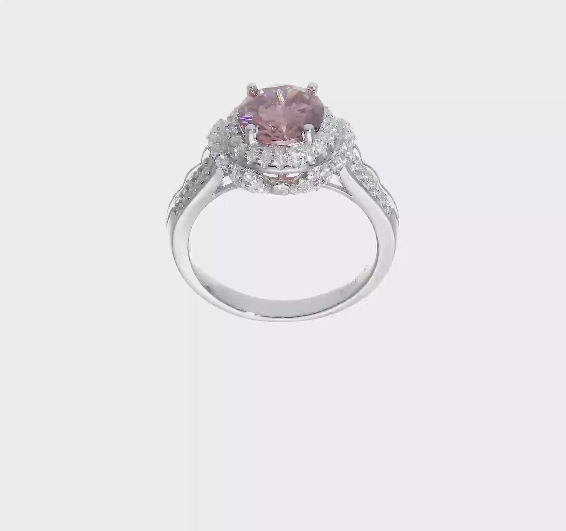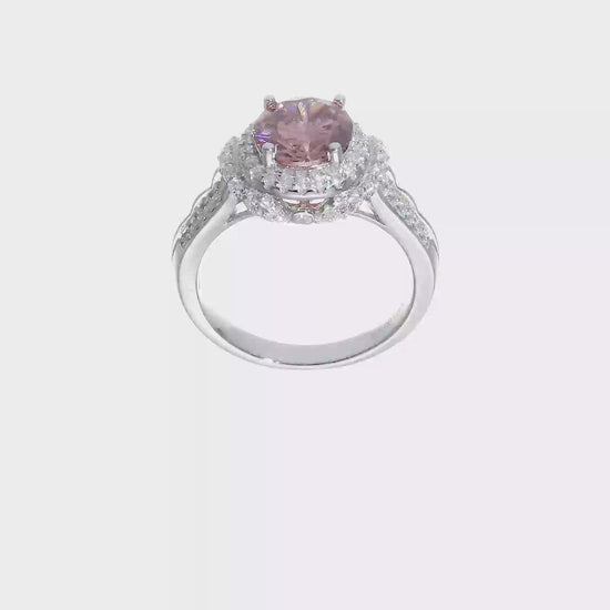 Sterling Silver Rhodium plated Smoky Pink Topaz and White CZ Ring Size 6